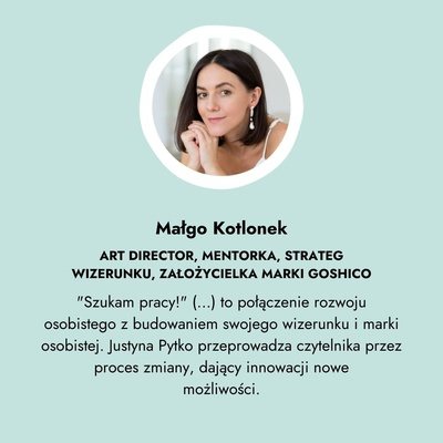 Ta książka to zdecydowanie coś więcej! Justyna poprowadzi Cię przez proces znalezienia pracy na współczesnym rynku, jak po nitce do kłębka. Dostaniesz konkretne narzędzia umożliwiające zdobycie pracy marzeń oraz ogrom dobrej energii i motywacji, aby zawalczyć o siebie. Odbędziesz podróż po świecie własnych wartości, talentów, marzeń i aspiracji. W końcu, aby wiedzieć czego szukasz i gdzie chcesz być, musisz poznać siebie i swoje potrzeby najlepiej, jak się da.