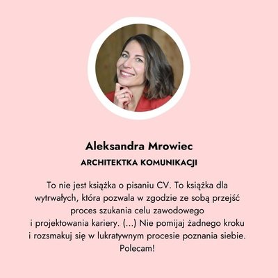 Poznaj pierwszą książkę Justyny Pytko, Projektantki Kariery, która nie jest kolejnym i nudnym przewodnikiem po procesie szukania zatrudnienia i pisania CV. Samo CV już nie wystarcza! Wymagane są też inne kompetencje niż jeszcze 10 czy 20 lat temu!